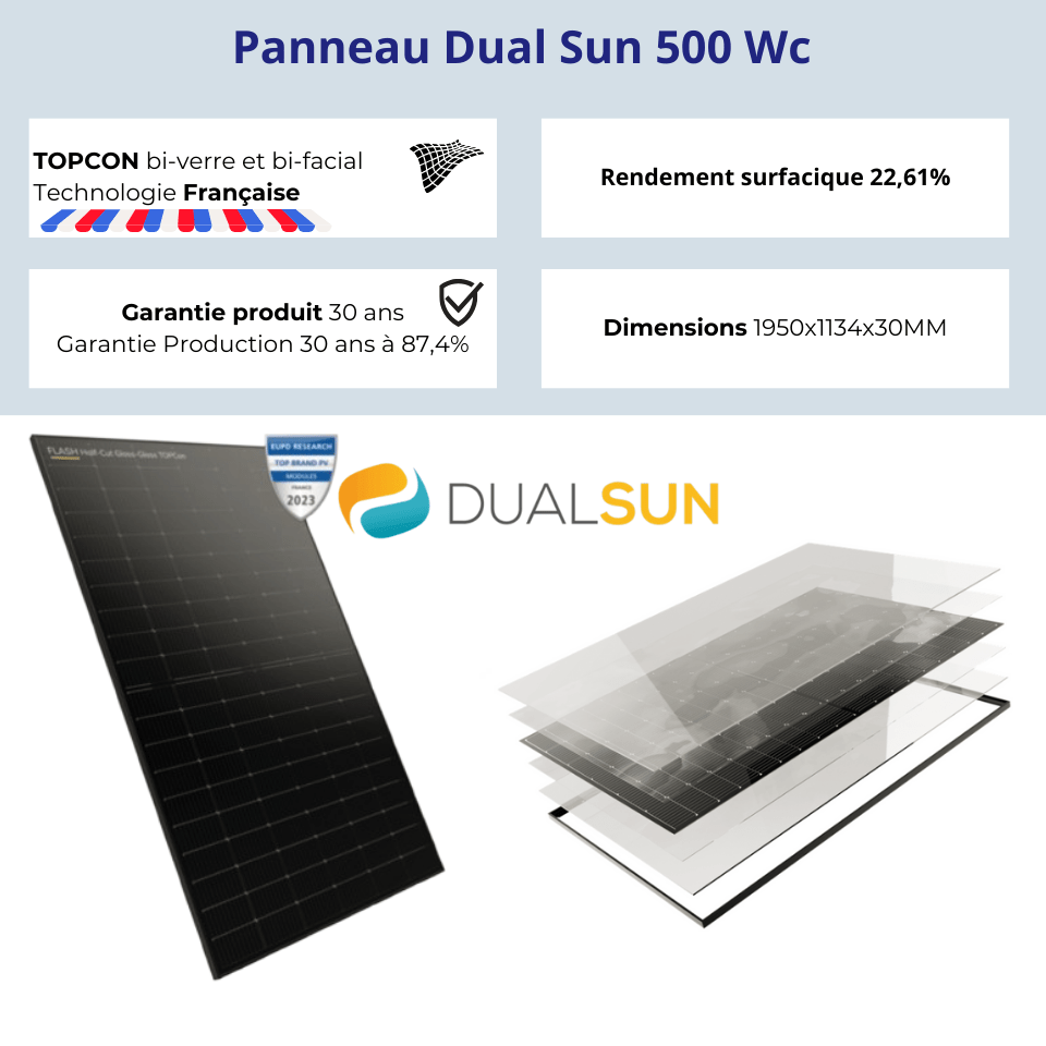 2 Panneaux solaires Dual Sun FLASH 500Wc BIVERRE BIFACIAL TOPCON
